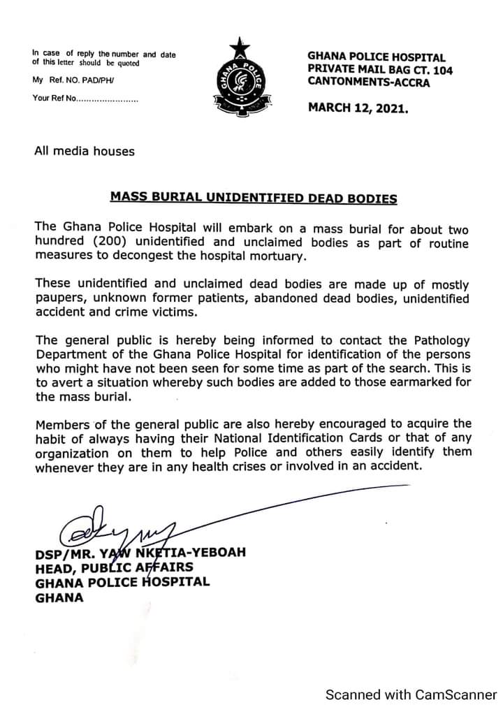 Police To Conduct Mass Burial For 200 Dead Bodies At Police Hospital