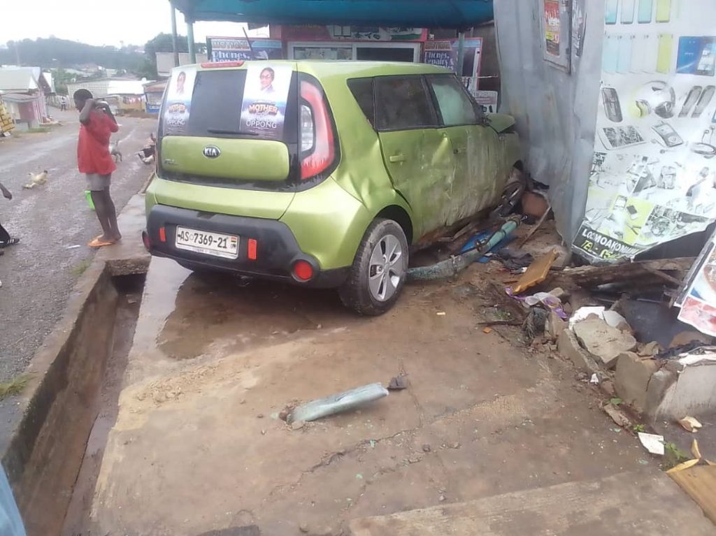 A Kia private car with registration number AS 7369-21, has killed a 48-year-old woman at Asante Akyem Juaso after running into a chop bar due to brake failure.