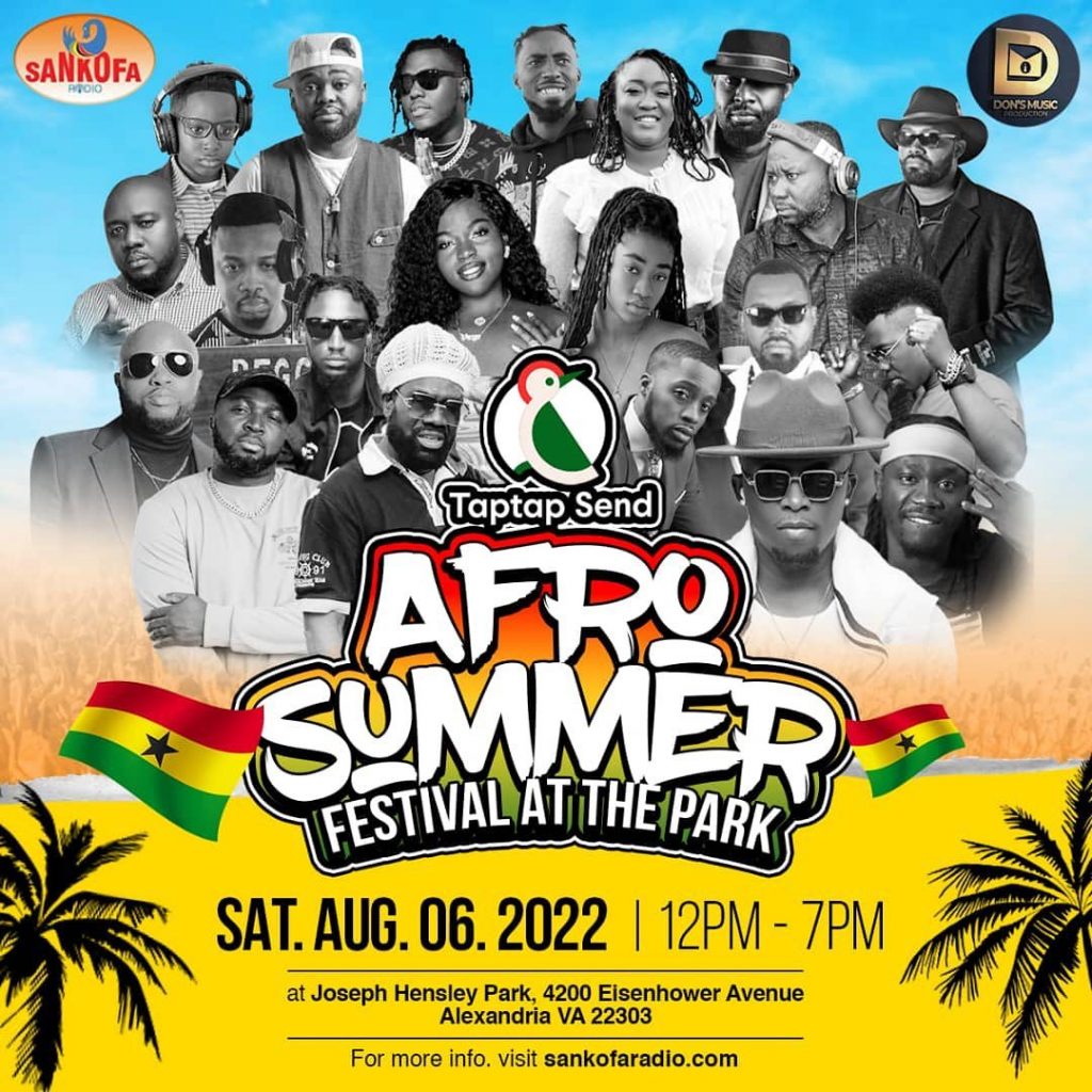 All is set for a family friendly celebration of African unity and culture at the Josept Hensley Park. For the past 10 years, Sankofa Radio, the longest serving online media for Afro-Ghanaians in the diaspora has put on this widely popular summer event in Alexandria. This year’s event is in collaboration with Don’s music production hat organizes the prestigious Ghana Music Awards-USA scheme.